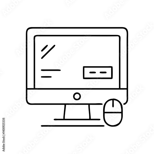 Simple Line Drawing of Desktop Computer and Mouse User Interface Design