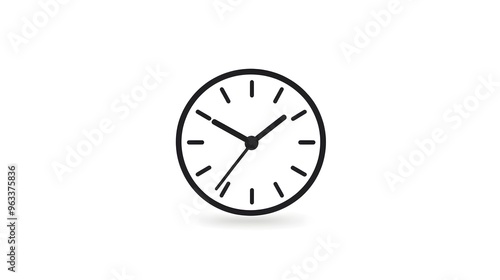 Simple Minimalist Clock on White Background - Time Concept and Design Element