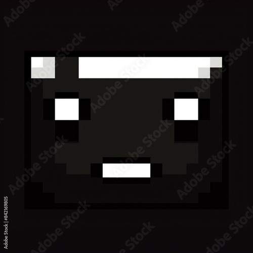 Simple minimalistic pixelated black background with two white pixels in the shape of cute smiling eyes, in the style of 8-bit pixel art.