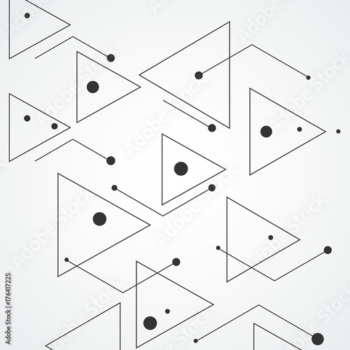 Simple pattern from triangles of lines and black dots, on white background. Designed for use in new technology projects. Simple, minimalistic, abstract background