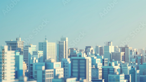 Simplistic Urban Landscape with Skyscrapers and Clear Blue Sky on a Sunny Midday, Highlighting Modern City Growth and Architectural Innovation