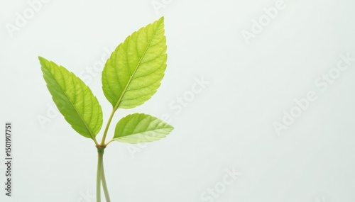 Single, delicate sapling against pure white backdrop , forestry, studio shot
