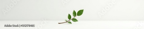 Single isolated branch on a plain white surface with subtle gradient, white, clean