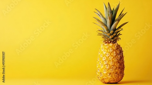 Single Pineapple on Yellow Background