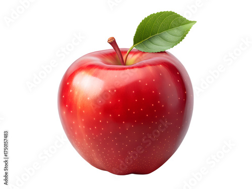 single red apple with leaf, realistic isolated on transparent background