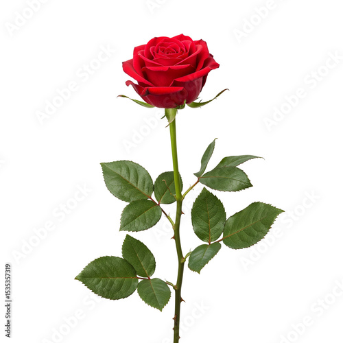 Single red rose stem isolated on transparent background