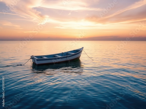 Single Small Rowboat at Sunset