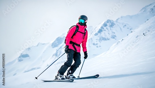 Skier enjoying winter thrill on snowy slope