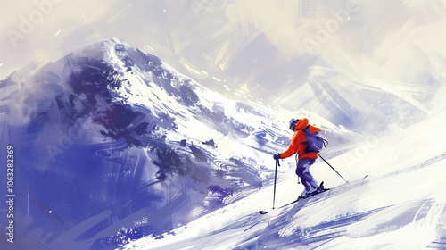 Skiing in a snowy mountain landscape.