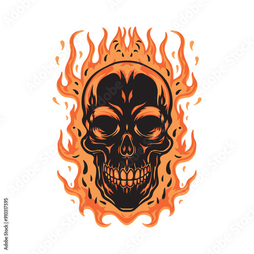 Skull on fire.vector illustration on white background