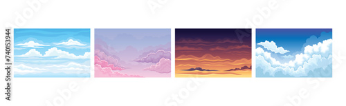 Sky Scene with Cloudscape Picturesque Scenery Vector Set