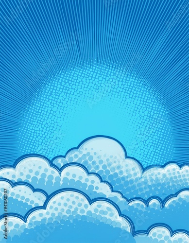 Sky with clouds halftone design background retro vector illustration.. Comic book theme