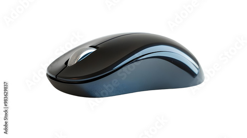 Sleek black computer mouse on white isolated background, showcasing modern design and functionality.