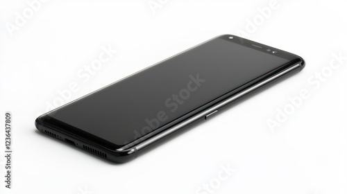 Sleek black smartphone isolated on white background.