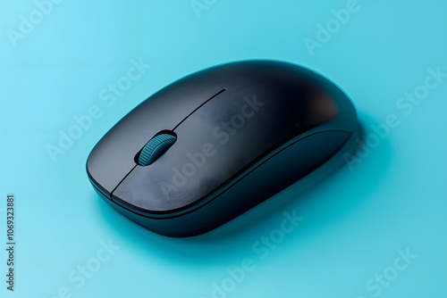 Sleek Black Wireless Mouse on a Vibrant Blue Background
