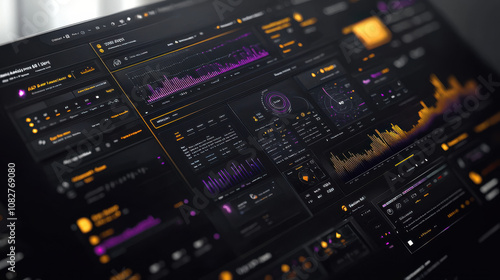 Sleek dashboard design focused on insights, emphasizing data visualization and analytics with modern, dark theme and vibrant accents for enhanced user experience