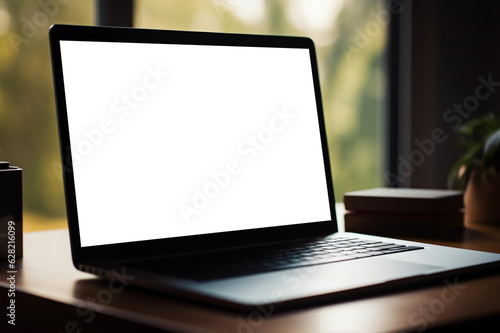 Sleek Laptop on Table, White Space for Ideas, Generative AI