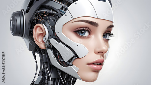 Sleek Robotic Head with Complex Circuitry and Glowing Lights