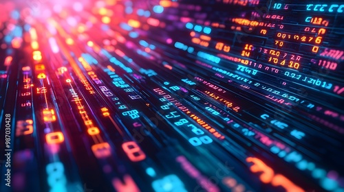 Slow Digital Algorithm Processing Futuristic Glowing Data Visualization
