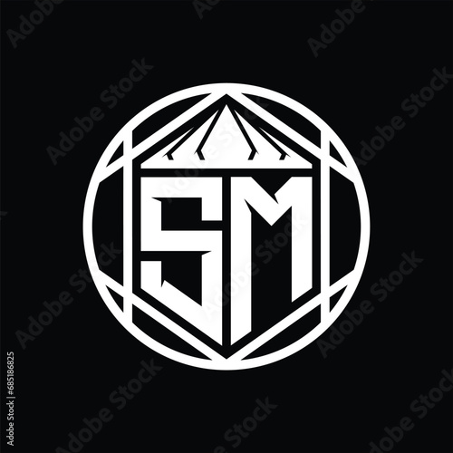 SM Letter Logo monogram hexagon slice crown sharp shield shape isolated circle abstract style design