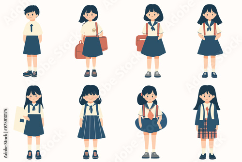 Small cute children wearing school uniform
