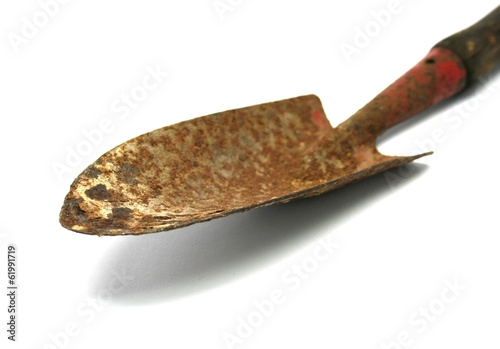 Small rusty shovel isolated on white