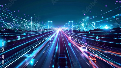 Smart city and abstract polygon pattern connection with speed line light, big data connection technology concept .