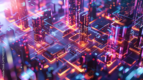 Smart City and network connection conceptand dot connect with gradient line design , big data connection technology concept. 3d render