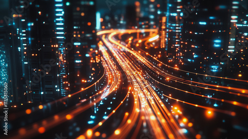 Smart digital Innovation city with connection network reciprocity over the cityscape. of future smart wireless digital city and social media networking systems that connects people with in city