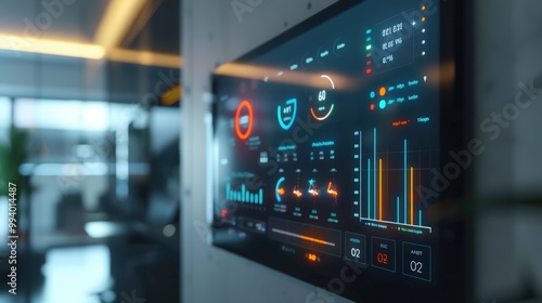 Smart Home Control Panel Displaying Energy Usage and Savings Data on Modern Touchscreen Interface