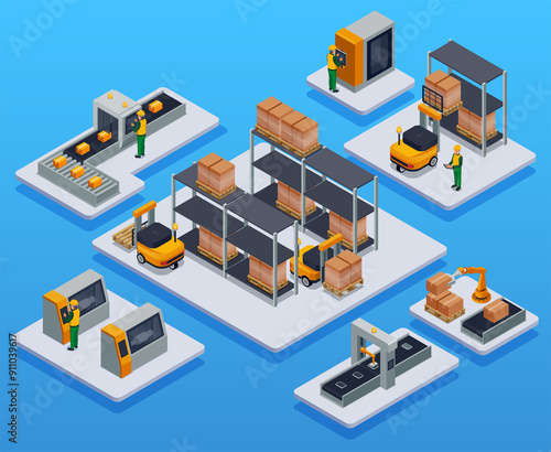 Smart industry illustrations in isometric view