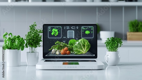 Smart Kitchen with Fresh Vegetables and Technology