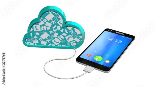 smartphone connected with a cloud - cloud computing concept