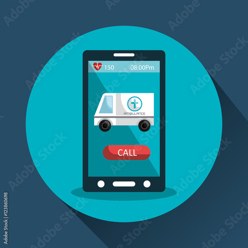 smartphone device and medical ambulance icon on screen over blue circle.vector illustration
