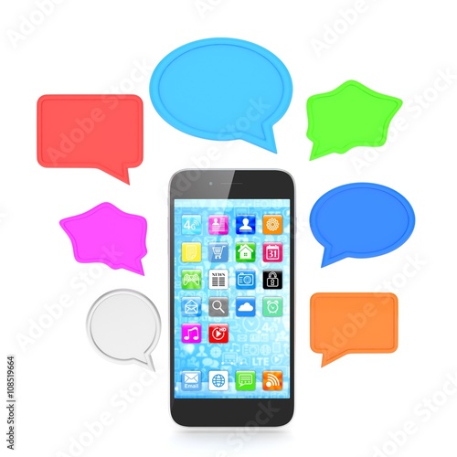 smartphone with bubbles isolated on white background. 3d rendering.