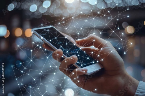 Smartphone with network dots technology created with generative ai