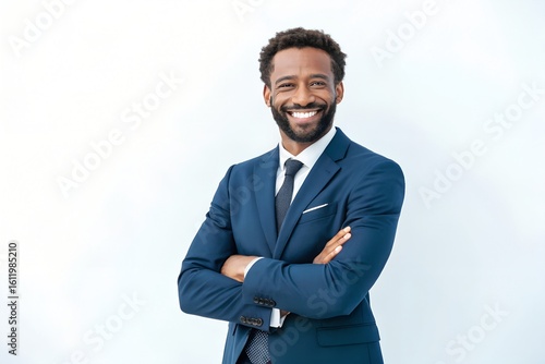 Smiling Black Man in Blue Suit with Crossed Arms businessman