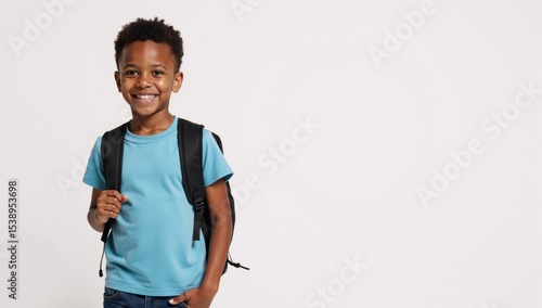 Smiling black school boy with backpack in elementary education setting