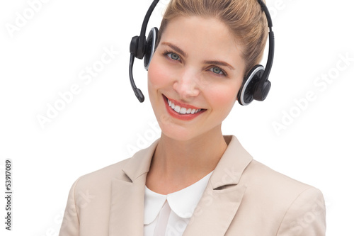 Smiling customer service agent