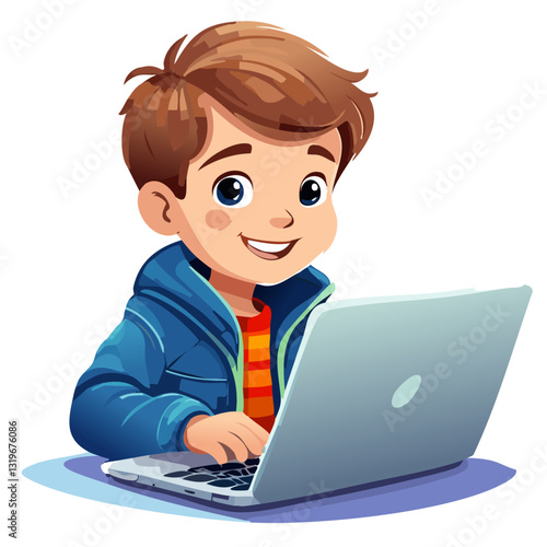 Smiling young boy while using a laptop,