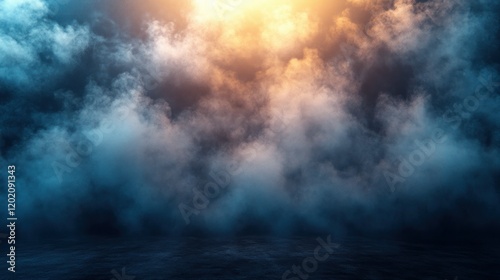 Smoky stage backdrop, dramatic lighting, studio, event background