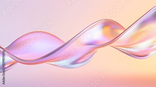 smooth iridescent 3d-rendered abstract wave form suspended in gradient space reflecting light dynamically copy space