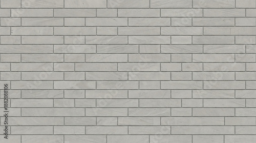 Smooth light gray brick wall texture featuring rectangular bricks arranged on a building facade