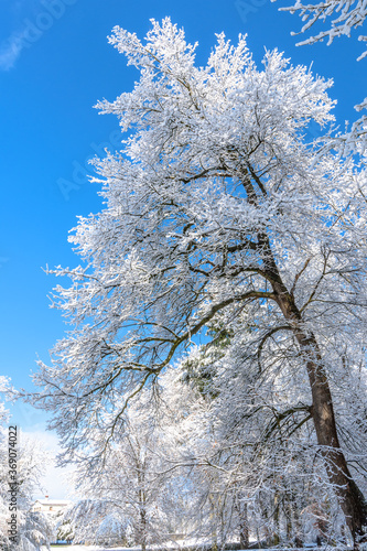 Snow covered tree (blue sky)