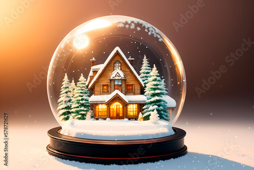 snow globe illustration, snowy, winter elements. Generative ai