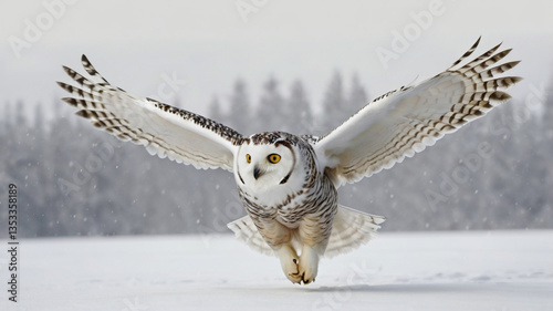 Snow owl in flight