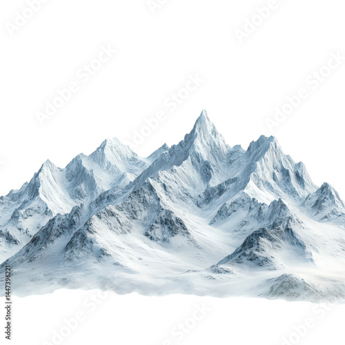 Snow-covered mountain range rises against a clear sky in a breathtaking natural landscape view