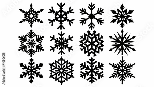 snow, snowflake, christmas, winter, pattern, silhouette, set, decoration, christmas design, cold, art, illustration, holiday, season, vector, flake, ornament, black, collection, december, element, isolated, signs, snowfall, symbol, silhouette