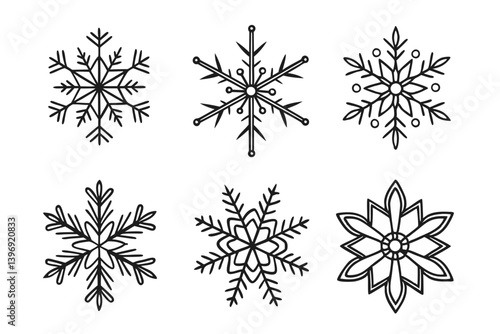 Snowflakes shape collection with editable stroke stock illustration
