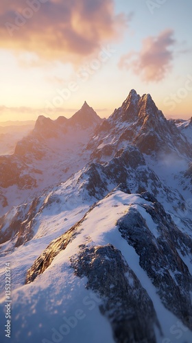 Snowy mountain range at sunset